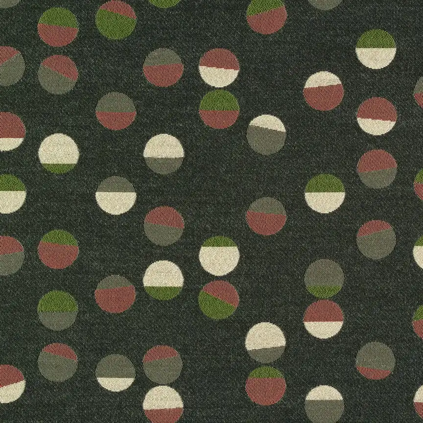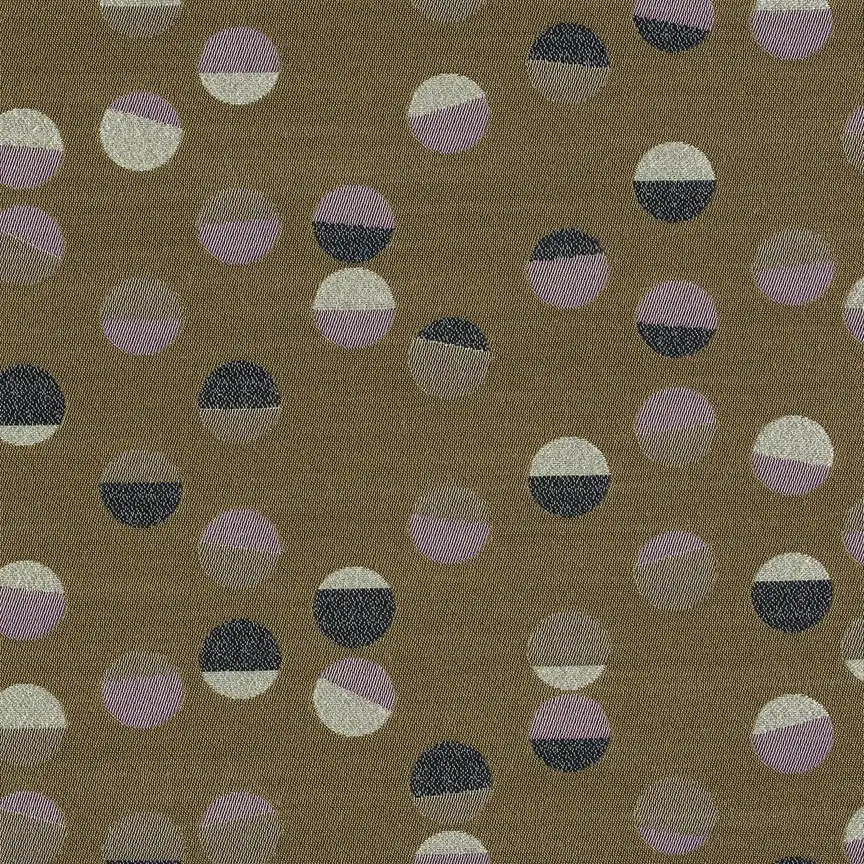 Fruit is a jacquard woven fabric, is inspired by imperfections in nature. Its graphic approach emphasizes color and form. A solid oval is transformed by perforated and textured overlays, creating effects of depth and transparency that contrast with density of a solid-coloured ground. Fruit is available in seven variations, all with a neutral base colour combined with light accent hues.