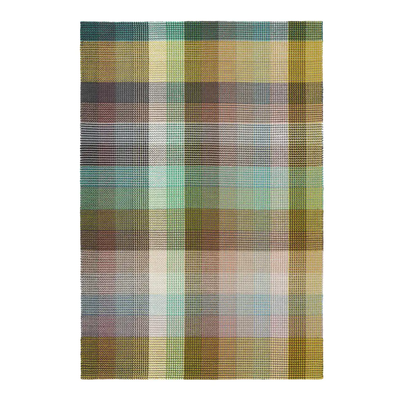 The houndstooth graphic is woven flat using different yarns and colours to create a complex rhythm and colour shift. The final design is an expressive check that reveals many surprising colour combinations.