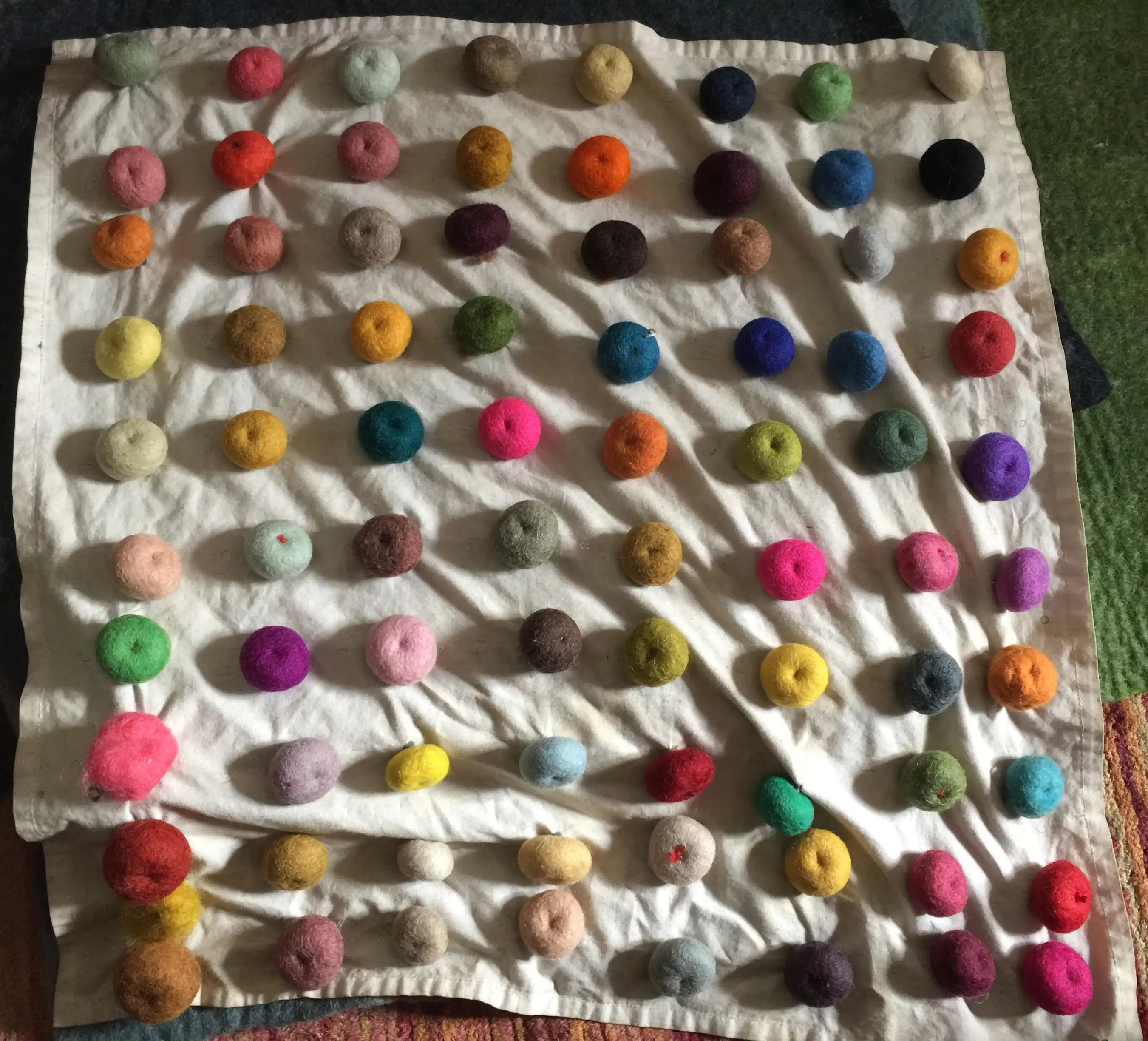 Sienna is hand-felted by a group of skilled women from Kathmandu. The process involves washing, soaping and dying, before the wool flocks are placed into the pattern. Many hours are then spent rolling the material by hand and foot until it is transformed into felt.