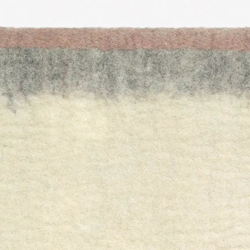 To achieve the watercolour-like effect, dyed flocks of wool are pulled by hand until the colours become almost transparent. The wool for Shore is hand-felted by a group of skilled women from Kathmandu. The process involves washing, soaping and dying and many hours are then spent rolling the material by hand and foot until it is transformed into felt